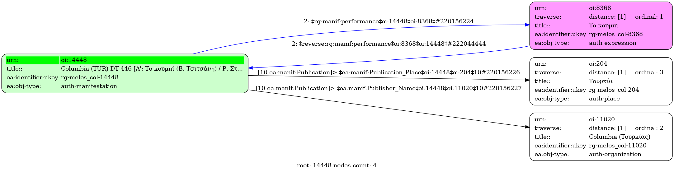 Columbia (TUR) DT 446 [A': Το κουμπί (Β. Τσιτσάνη) / Ρ. Στάμου, Β. Τσιτσάνης, Ν. Βούλγαρης] - [Β': Απόψε μ' εγκατέλειψες (Στ. Χρυσίνη) / Ρ. Στάμου, Β. Τσιτσάνης, Ν. Βούλγαρης] - Identifier: 14448