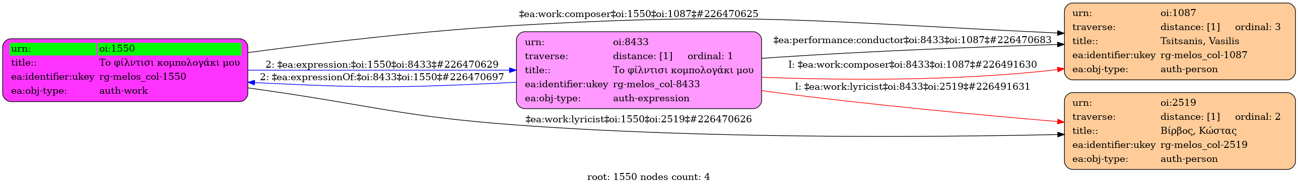 Internal display of the 1550 entity interconnections (Node labels correspond to identifiers)