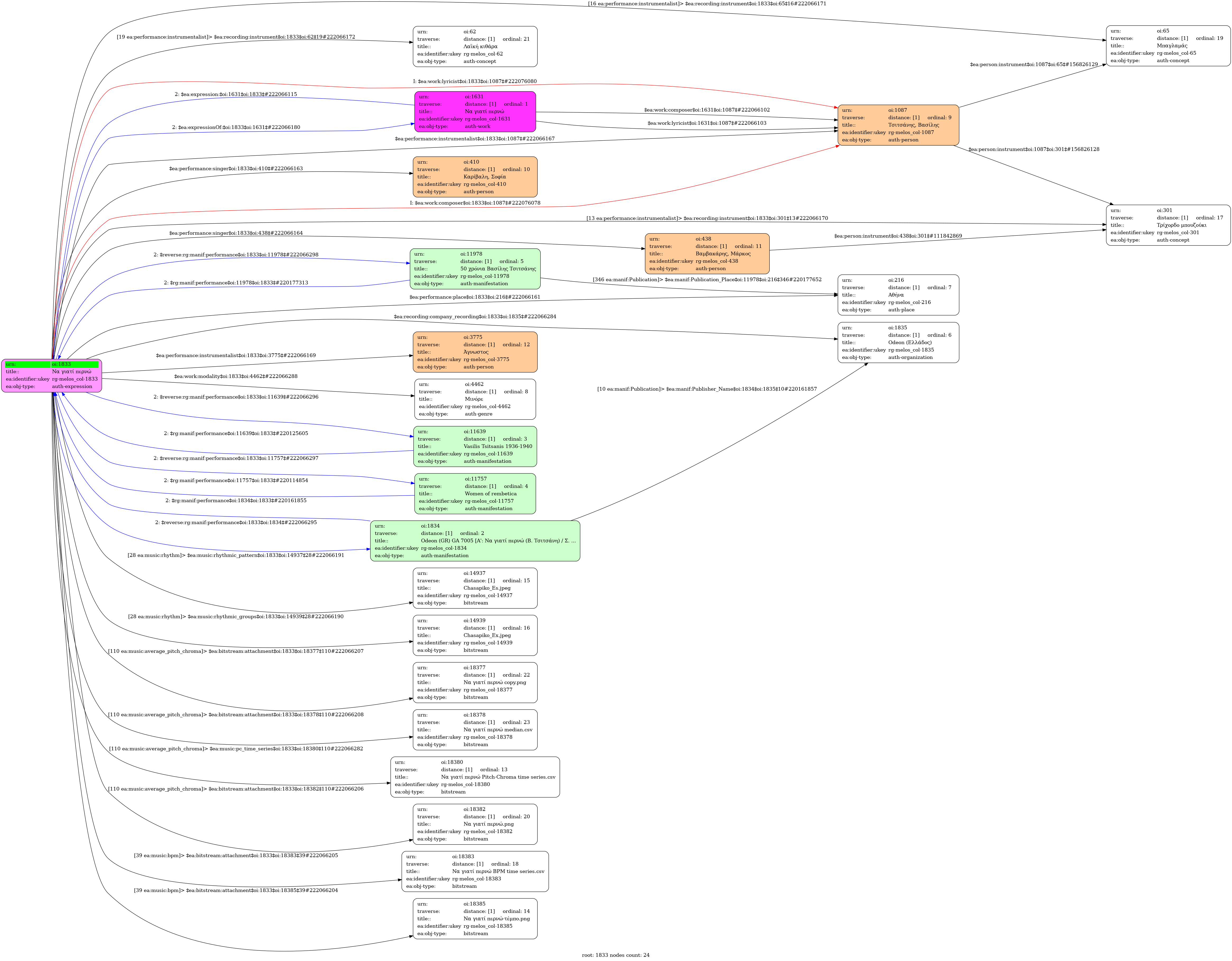 Το ραβδόγραμμα δείχνει τις χρονο-μεσοσταθμικές τιμές του chromagram, κανονικοποιημένες στη μονάδα. Τα αρχεία CSV περιέχουν τα αριθμητικά δεδομένα που χρησιμοποιήθηκαν για τη δημιουργία του ραβδογράμματος και του chromagram. Οι κορυφές (μέγιστα) του chromagram και των ραβδογραμμάτων αντιστοιχούν στις πιο έντονες νότες που παίζονται ή τραγουδιούνται. Στις περισσότερες περιπτώσεις, η μέγιστη κορυφή στο ραβδόγραμμα αντιστοιχεί στην τονική του πιο κυρίαρχου δρόμου. Σε άλλες περιπτώσεις, μπορεί επίσης να αντιστοιχεί στην πέμπτη και, λιγότερο συχνά, στην τρίτη του δρόμου (ή δρόμων). Σημειώστε επίσης ότι, λόγω της εναρμόνισης των δρόμων, το chromagram και το ραβδόγραμμα μπορεί να παρουσιάζουν κορυφές (τοπικά μέγιστα) στη δεύτερη και (φυσική) έβδομη βαθμίδα τους.