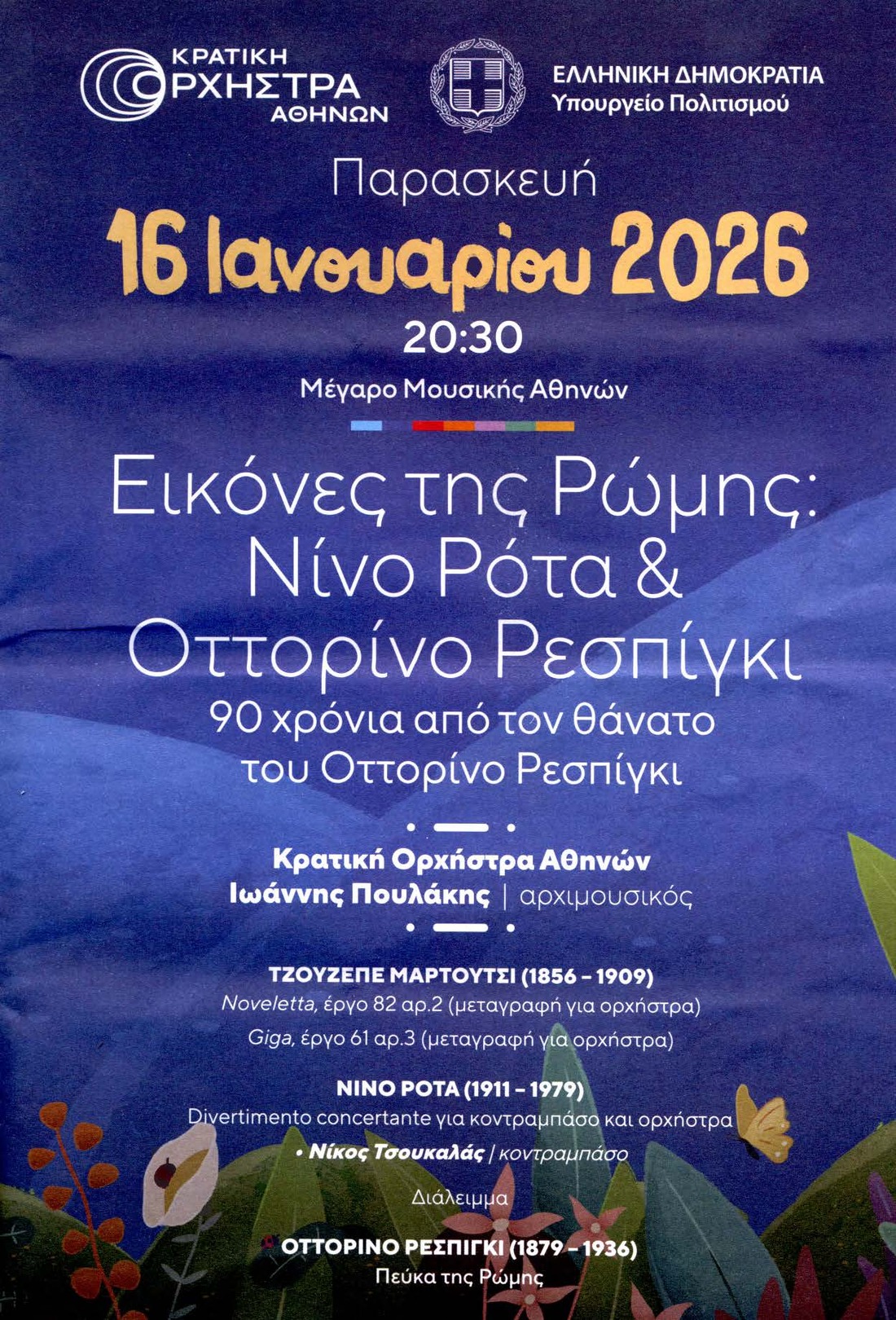 Nikos Tsoukalas, double bassOTTORINO RESPIGHI (1879 – 1936)