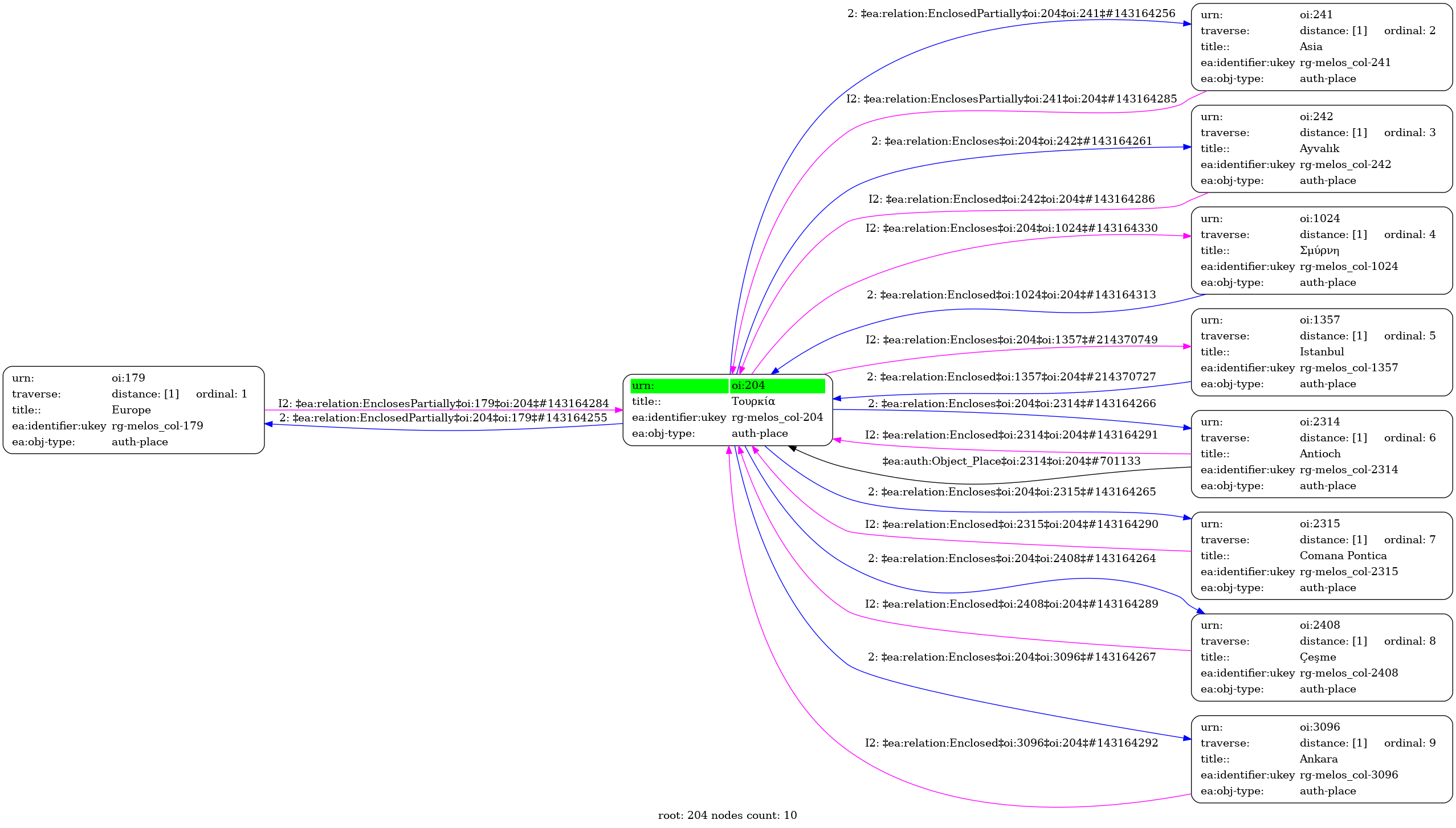 Internal display of the 204 entity interconnections (Node labels correspond to identifiers)