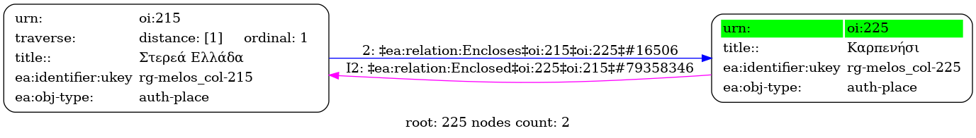 Internal display of the 225 entity interconnections