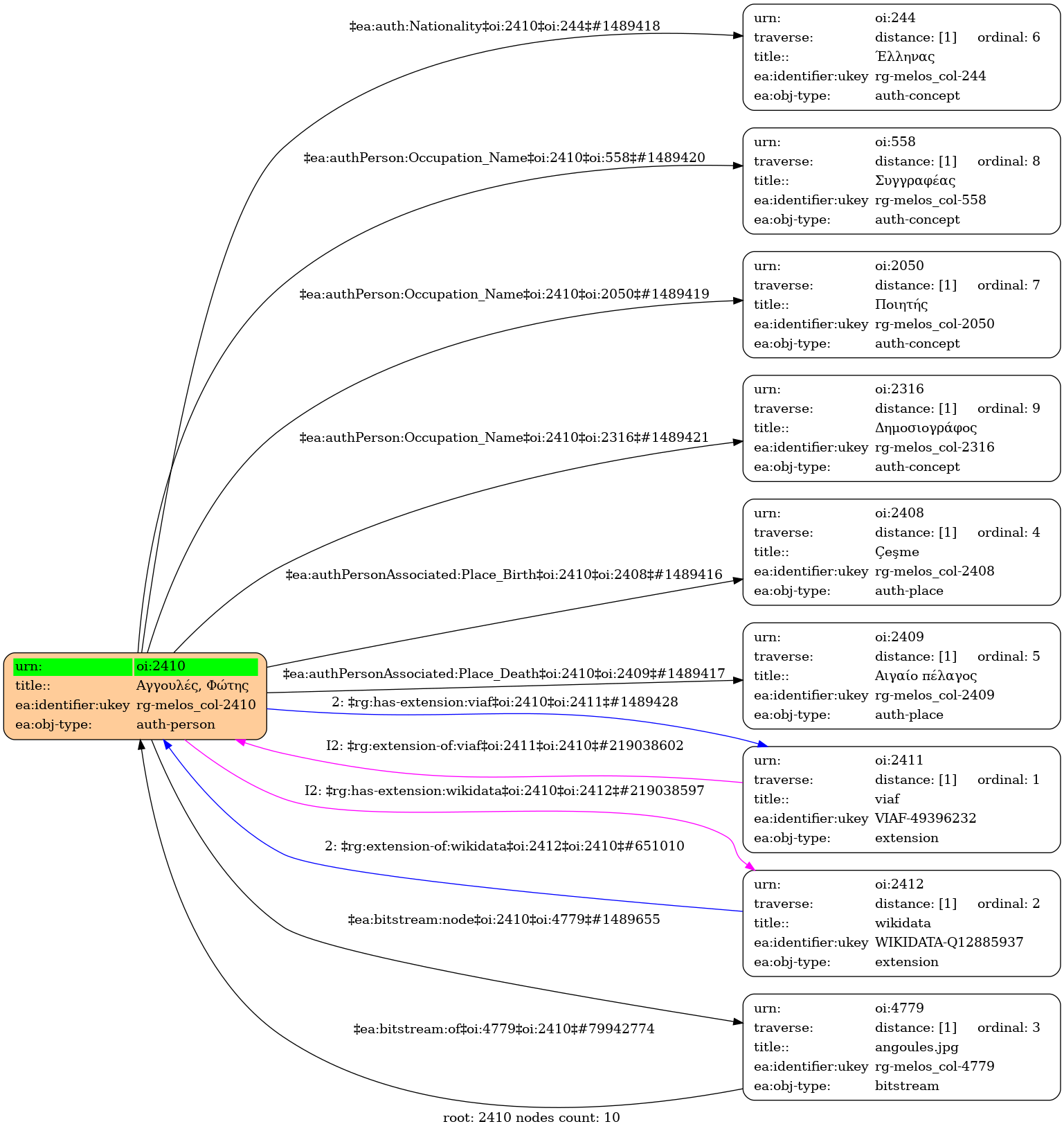 Internal display of the 2410 entity interconnections (Node labels correspond to identifiers)