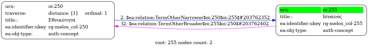 Internal display of the 255 entity interconnections