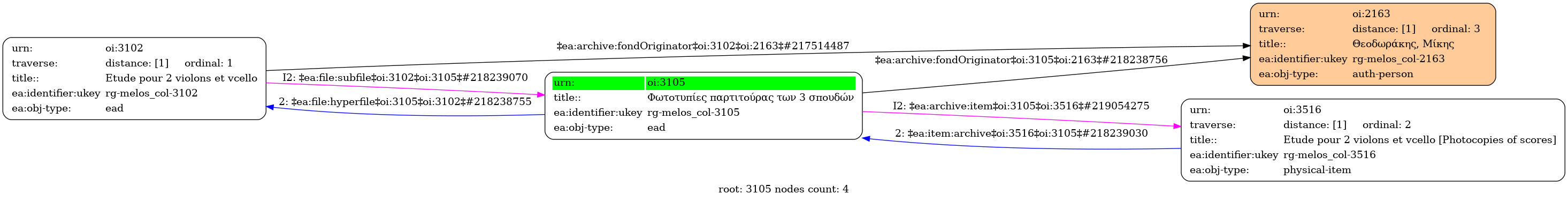 Internal display of the 3105 entity interconnections (Node labels correspond to identifiers)