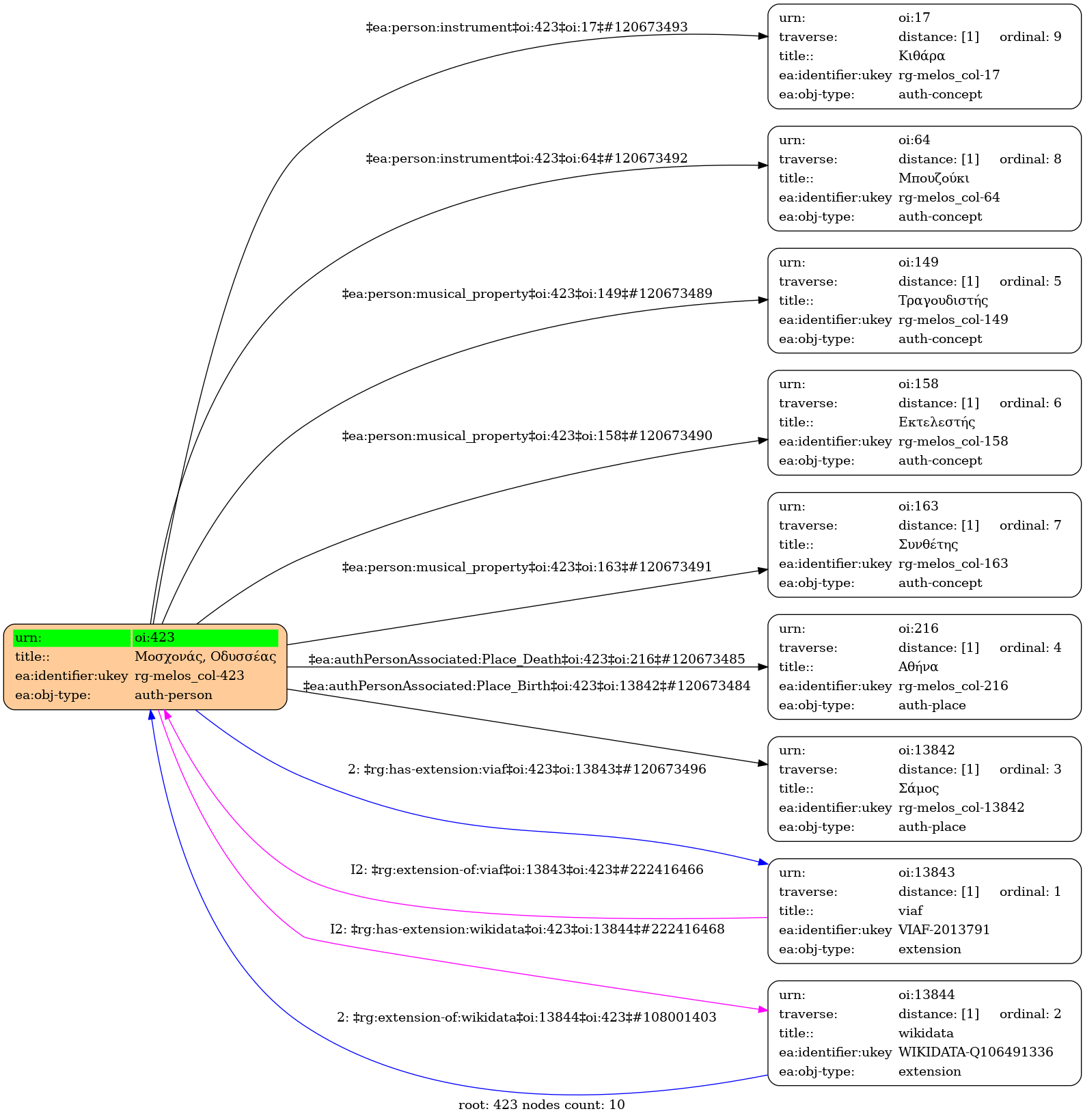 Internal display of the 423 entity interconnections (Node labels correspond to identifiers)