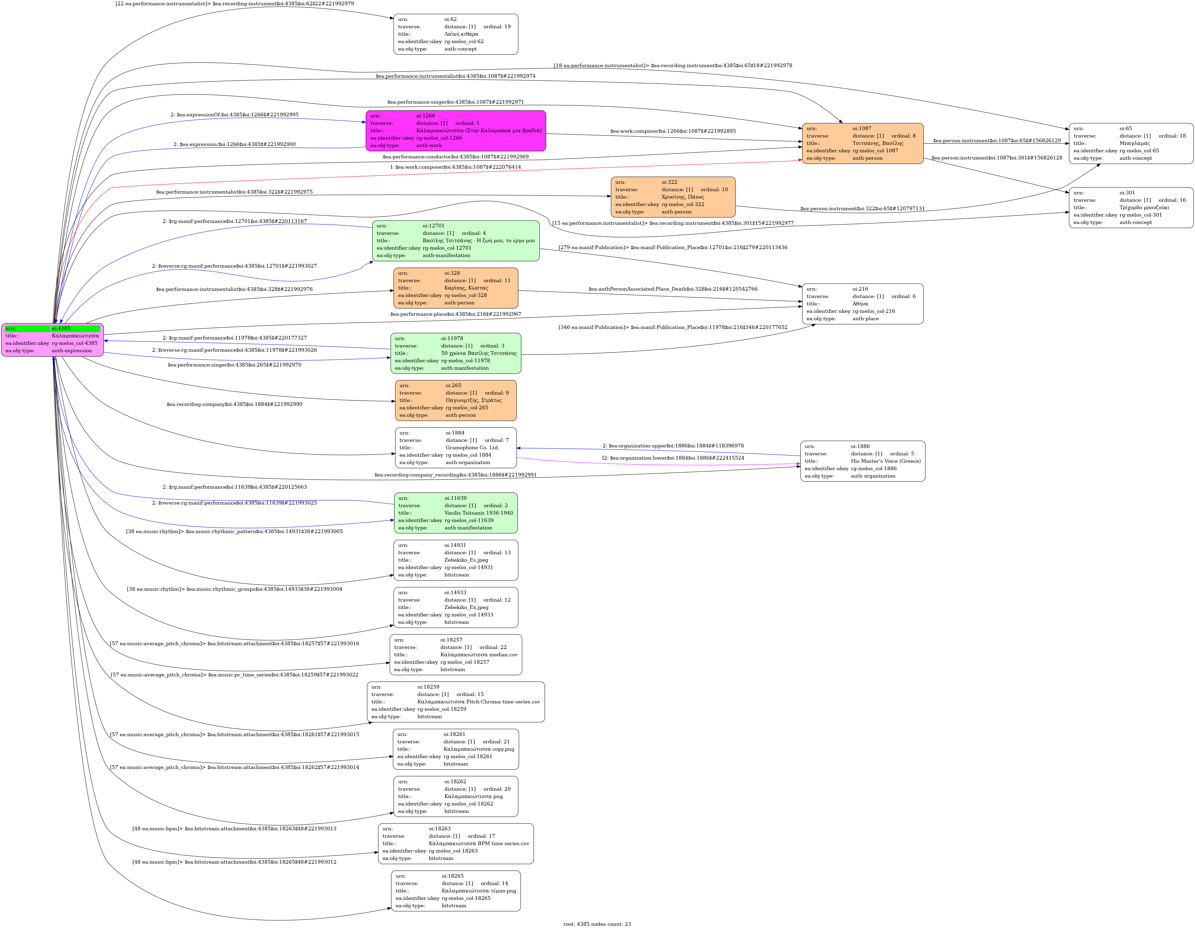 Το ραβδόγραμμα δείχνει τις χρονο-μεσοσταθμικές τιμές του chromagram, κανονικοποιημένες στη μονάδα. Τα αρχεία CSV περιέχουν τα αριθμητικά δεδομένα που χρησιμοποιήθηκαν για τη δημιουργία του ραβδογράμματος και του chromagram. Οι κορυφές (μέγιστα) του chromagram και των ραβδογραμμάτων αντιστοιχούν στις πιο έντονες νότες που παίζονται ή τραγουδιούνται. Στις περισσότερες περιπτώσεις, η μέγιστη κορυφή στο ραβδόγραμμα αντιστοιχεί στην τονική του πιο κυρίαρχου δρόμου. Σε άλλες περιπτώσεις, μπορεί επίσης να αντιστοιχεί στην πέμπτη και, λιγότερο συχνά, στην τρίτη του δρόμου (ή δρόμων). Σημειώστε επίσης ότι, λόγω της εναρμόνισης των δρόμων, το chromagram και το ραβδόγραμμα μπορεί να παρουσιάζουν κορυφές (τοπικά μέγιστα) στη δεύτερη και (φυσική) έβδομη βαθμίδα τους.