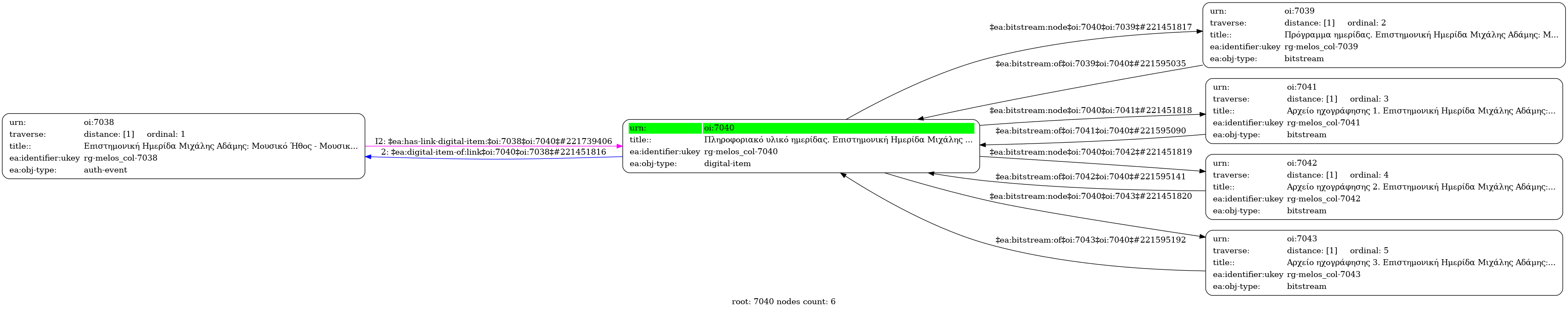 Internal display of the 7040 entity interconnections (Node labels correspond to identifiers)