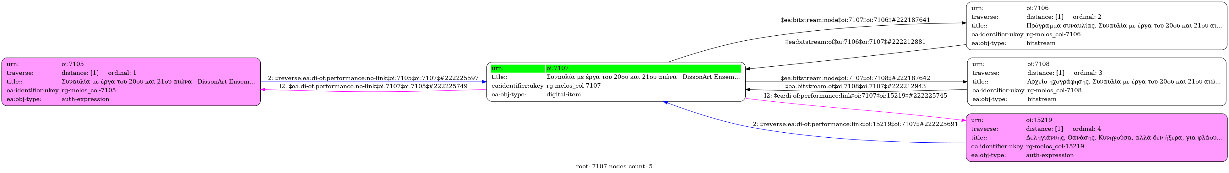 Internal display of the 7107 entity interconnections (Node labels correspond to identifiers)