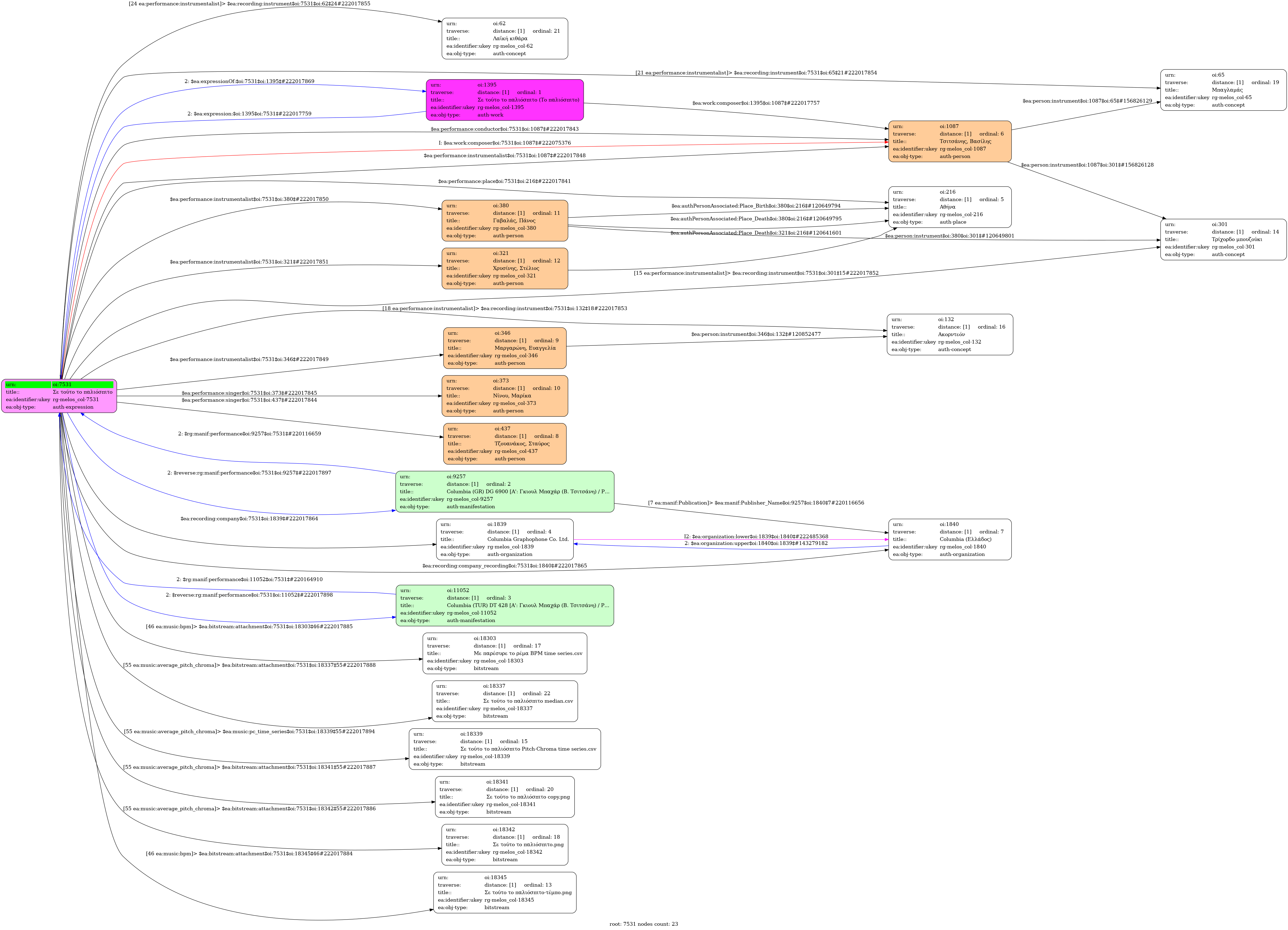 The bar plot shows the time-averaged chromagram values normalized to unity. The CSV files contain the numerical data used to generate the bar plot and chromagram. The peaks of the chromagram and bar plots correspond to the most prominent notes being played or sung. In most cases, the most prominent peak in the bar plots corresponds to the tonic of the most prominent dromos/mode. In other cases, it may also correspond to the fifth and, less frequently, to the third of the mode (or modes). Note also that, due to the harmonization of folk-popular modes, the chromagram and bar plots may exhibit peaks on the second and (natural) seventh modes.