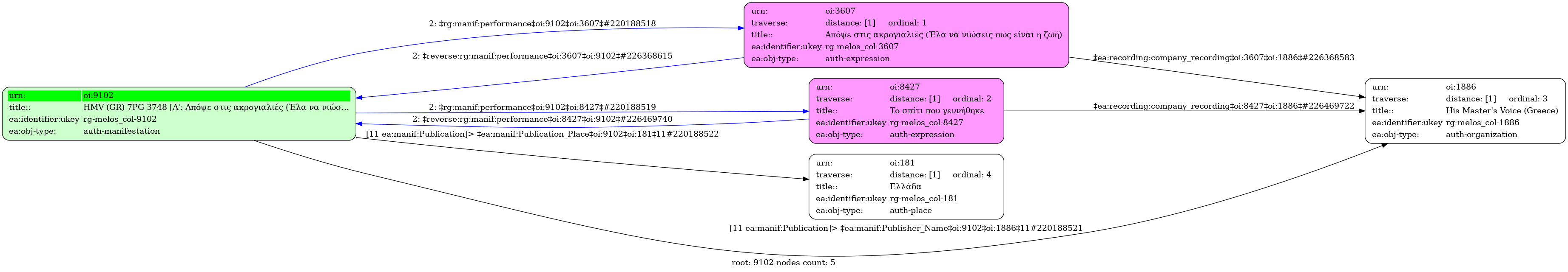 HMV (GR) 7PG 3748 [Α': Απόψε στις ακρογιαλιές (Έλα να νιώσεις πως είναι η ζωή) (Β. Τσιτσάνη) / Β. Τσιτσάνης, Χ. Λαμπράκη] - [Β': Το σπίτι που γεννήθηκε (Β. Τσιτσάνη) / Β. Τσιτσάνης, Χ. Λαμπράκη, Γ. Δροσινός] - Identifier: 9102