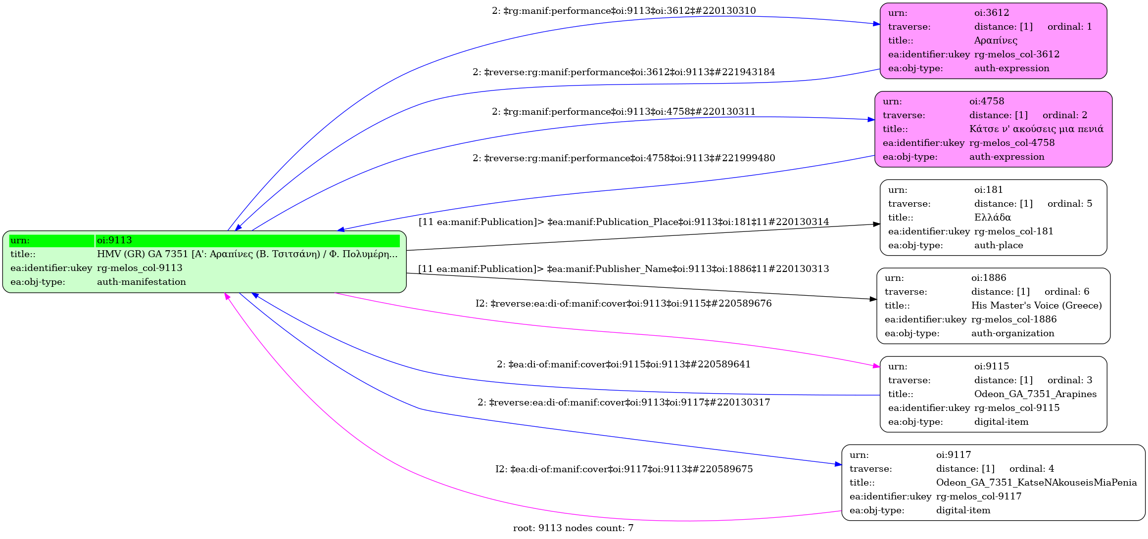 HMV (GR) GA 7351 [Α': Αραπίνες (Β. Τσιτσάνη) / Φ. Πολυμέρης] - [Β': Κάτσε ν' ακούσεις μια πενιά (Β. Τσιτσάνη) / Πρ. Τσαουσάκης, Β. Τσιτσάνης, Μ. Βαμβακάρης] - Identifier: 9113