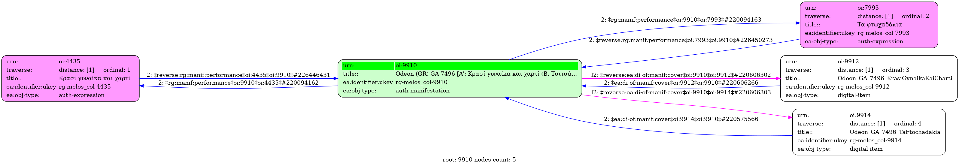 Internal display of the 9910 entity interconnections (Node labels correspond to identifiers)