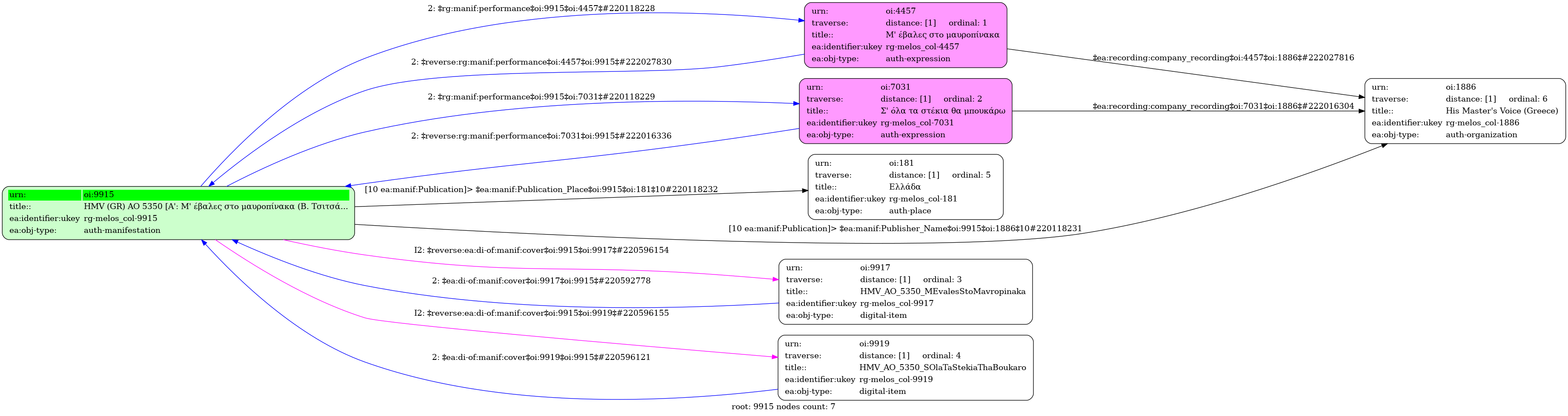 HMV (GR) ΑΟ 5350 [A': Μ' έβαλες στο μαυροπίνακα (Β. Τσιτσάνη) / Γρ. Μπιθικώτσης] - [Β': Σ' όλα τα στέκια θα μπουκάρω (Β. Τσιτσάνης) / Κ. Γκρέυ, Αντ. Κλειδωνιάρης, Γρ. Μπιθικώτσης] - Identifier: 9915